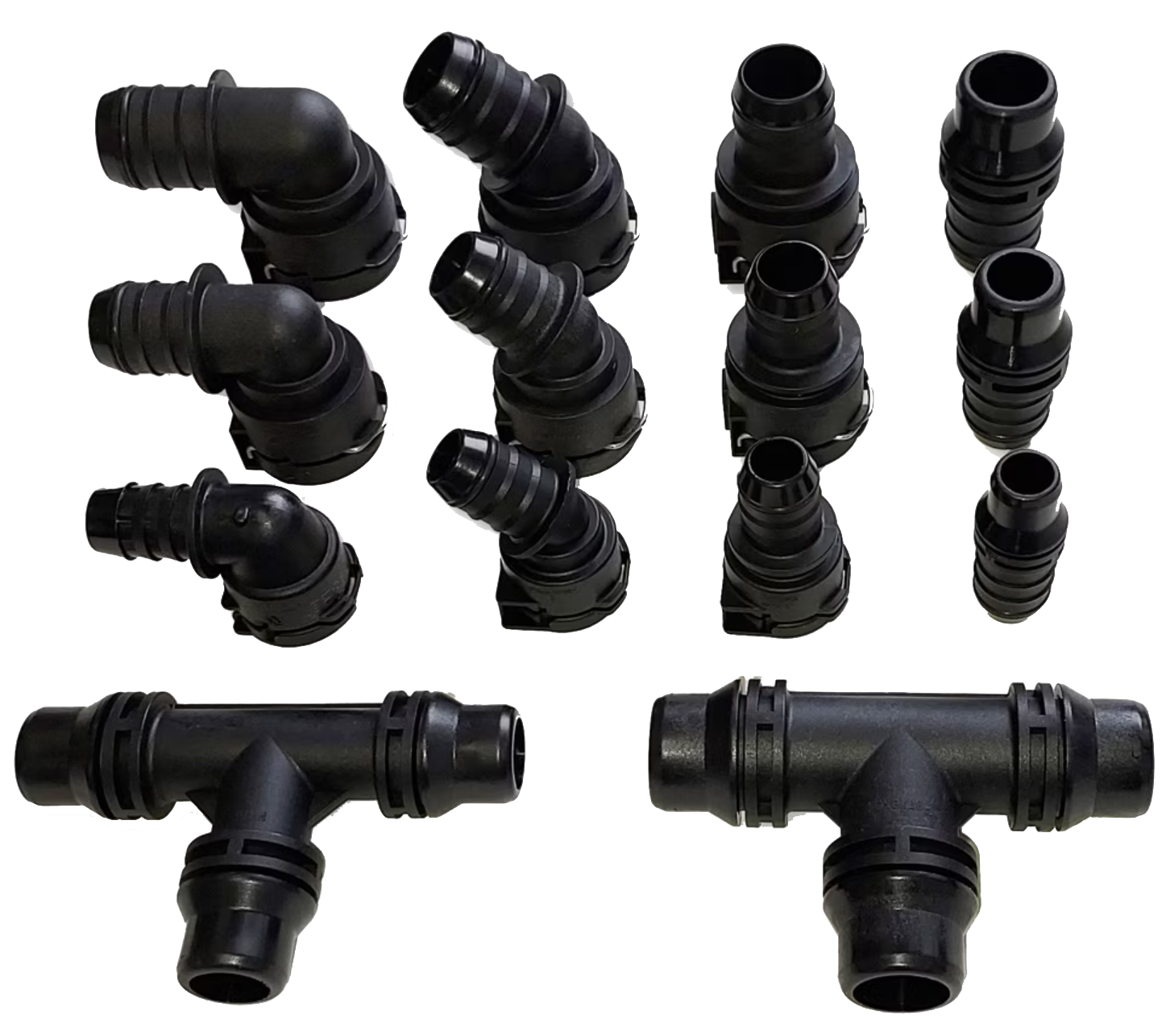 VDA接頭包含12mm、16mm和20mm三種尺寸,每種尺寸均提供內(nèi)螺紋90°彎接頭、內(nèi)螺紋45°彎接頭、內(nèi)螺紋直接頭和外螺紋直接頭四種配置。由于ECH軟管接頭種類多,冷卻系統(tǒng)的設(shè)計(jì)變得靈活、簡(jiǎn)便。此外,ECH軟管導(dǎo)熱率比制造商之前采用的鋁管導(dǎo)熱率更低,可以減少整個(gè)回路散發(fā)到環(huán)境的空氣熱量。因此,對(duì)特殊泡沫隔熱材料的需求更少。