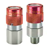 H 系列快換陰接頭,承壓(液壓)可達10,000 psi,能夠符合液壓工具制造協(xié)會 (HTMA) 標準要求,并且能與FH系列陽接頭配合連接。派克 FH 系列是高壓無溢流型快換,因此不能與低壓快換接頭配合連接。紅色表面能夠使得這些快換接頭容易作為高壓快換 (10,000 psi) 作為識別。陰接頭有套筒鎖功能,減少意外斷開的情況??鞊Q陰接頭與陽接頭目前可供尺寸僅 3/8"