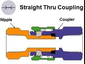 直通快換接頭內(nèi)部無閥,主要用于水路或要求全速流動的場合,如壓力沖洗設備、蒸汽清洗設備、流體輸送管路、制冷系統(tǒng)等。