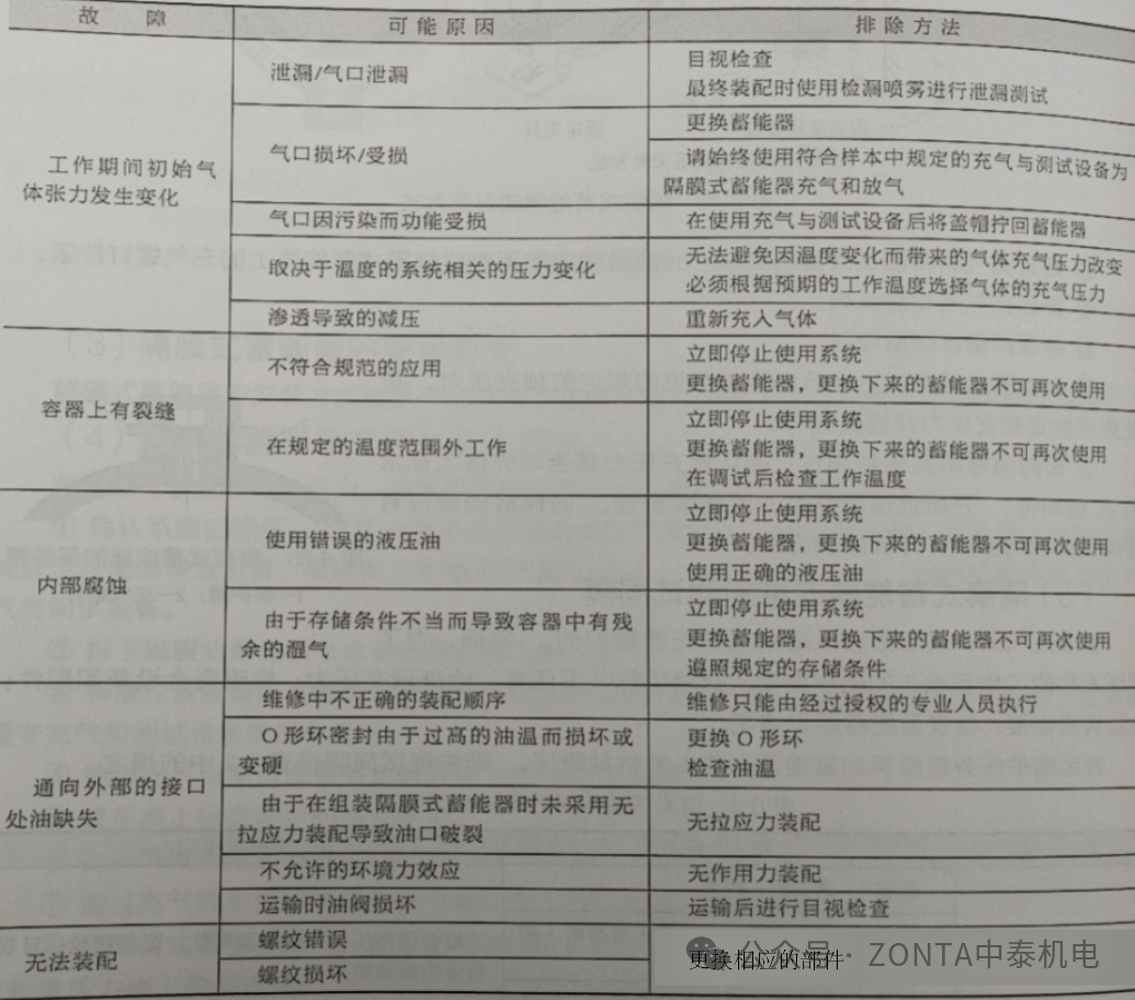 目前皮式蓄能器還沒有提供破裂的預警指示,只能從觀察響應速度和效率下降以及預充壓力下降做出判斷,采取必要的措施,防止發(fā)生嚴重的后果。