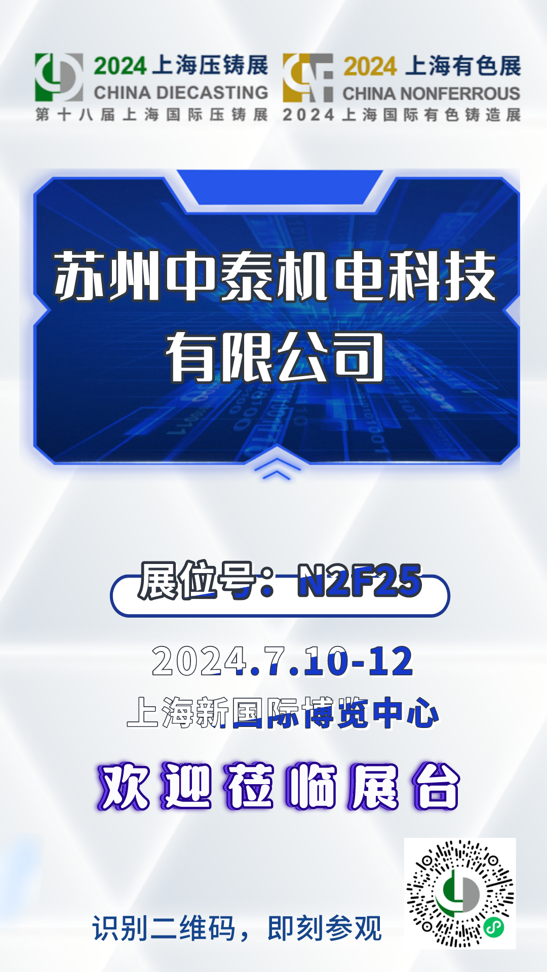 2024年7月10日 – 12日,第十八屆上海國(guó)際壓鑄暨有色鑄造展將在上海新國(guó)際博覽中心盛大開(kāi)展,歡迎各位蒞臨蘇州中泰機(jī)電科技有限公司展臺(tái)參觀指導(dǎo)!