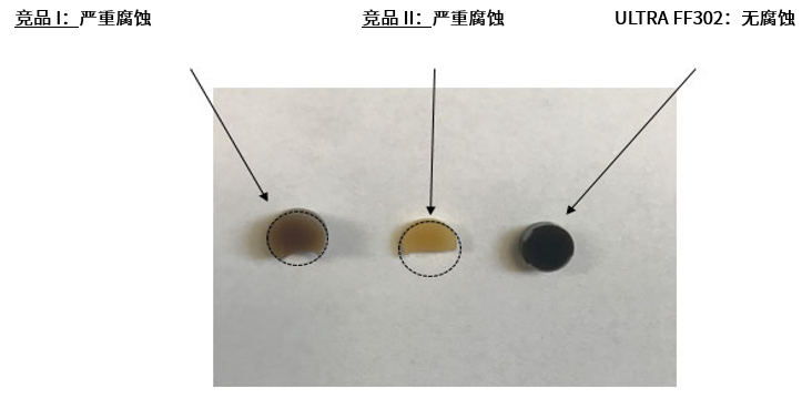 實(shí)驗(yàn)室測試表明,與當(dāng)今先進(jìn)的彈性體材料相比,Ultra FF302在腐蝕性等離子體化學(xué)物質(zhì)中的腐蝕程度更低。(下圖展示了不同耐腐蝕性能的FFKM暴露于O2等離子體后的腐蝕水平)