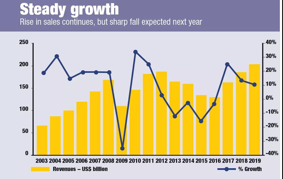 盡管2019年的數(shù)字創(chuàng)歷史新高,但值得強調的是,增速正在放緩。《Yellow Table》顯示2017年與2016年相比增長了25.5%,2018年的增長率為13.5%。受新冠肺炎疫情影響,明年全球銷量將大幅下降。