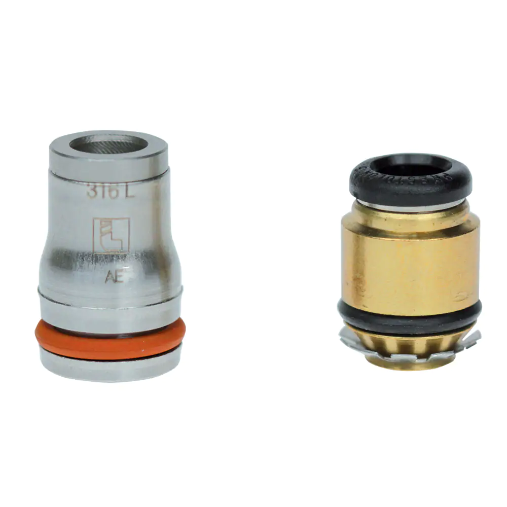 為了兼容多種流體和適應(yīng)惡劣使用狀況(+150?C),派克樂可利開發(fā)了兩類埋入式接頭。使用我們的金屬埋入式接頭可以優(yōu)化安裝配置,對(duì)于TL而言,接頭還可以拆卸。