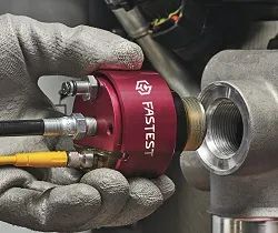 先用夾具連接尾部的兩個(gè)固定孔,把接頭固定在測(cè)試件上;施加先導(dǎo)氣壓膨脹密封圈進(jìn)行密封;從測(cè)試孔通入測(cè)試介質(zhì);測(cè)試完畢后氣壓減小,密封圈回縮,進(jìn)行下一測(cè)試件的密封。整個(gè)操作過(guò)程只需幾秒,自動(dòng)化流程,無(wú)需手動(dòng)操作。