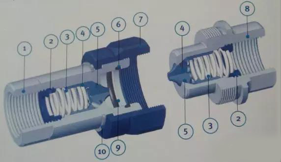 ①-閥座②-插座本體③-套筒④-閥⑤閥芯 ⑥-活塞 ⑦-閥座 ⑧-接頭 ⑨-閥芯 ⑩-插頭本體